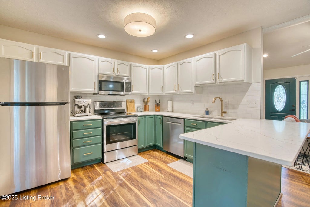 Easy Fort Knox commute in an amenity-rich community. This updated 3-bed, 3-bath (~2,200 sq ft) Doe Valley home blends stylish finishes with practical upgrades: quartz kitchen with tile backsplash and stainless appliances; a full pantry conversion with butcher-block counters and serious storage; LVP across the main level; refreshed lighting; and fully remodeled tile-floor bathrooms with quartz tops (the primary adds a floor-to-ceiling subway-tile feature). The finished basement provides a private bedroom and full bath perfect for a guest or MIL suite completed with new high-end carpet.